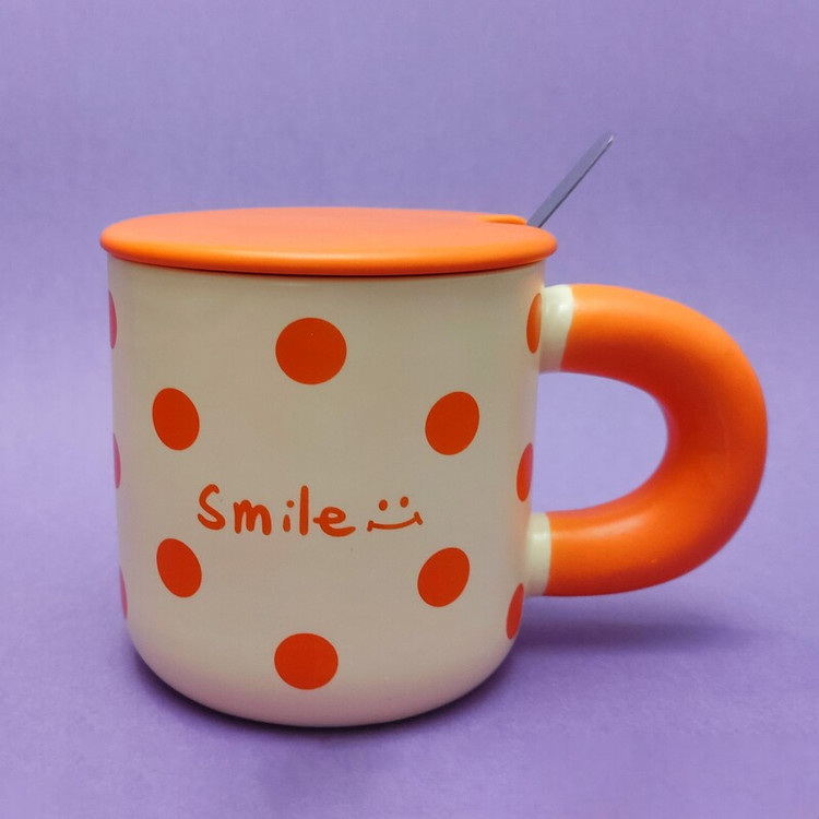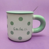 ماگ سرامیکی درب و دار و قاشق دار 400 میلی لیتری طرح لبخند