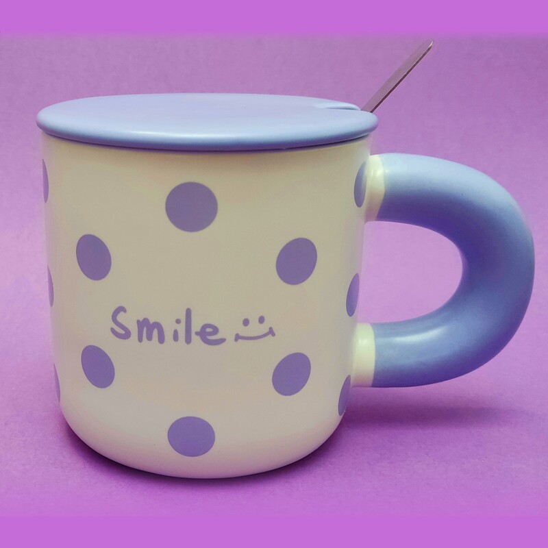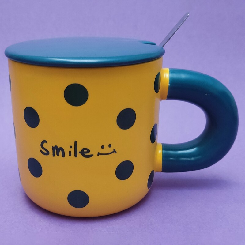 ماگ سرامیکی درب و دار و قاشق دار 400 میلی لیتری طرح لبخند